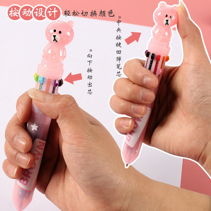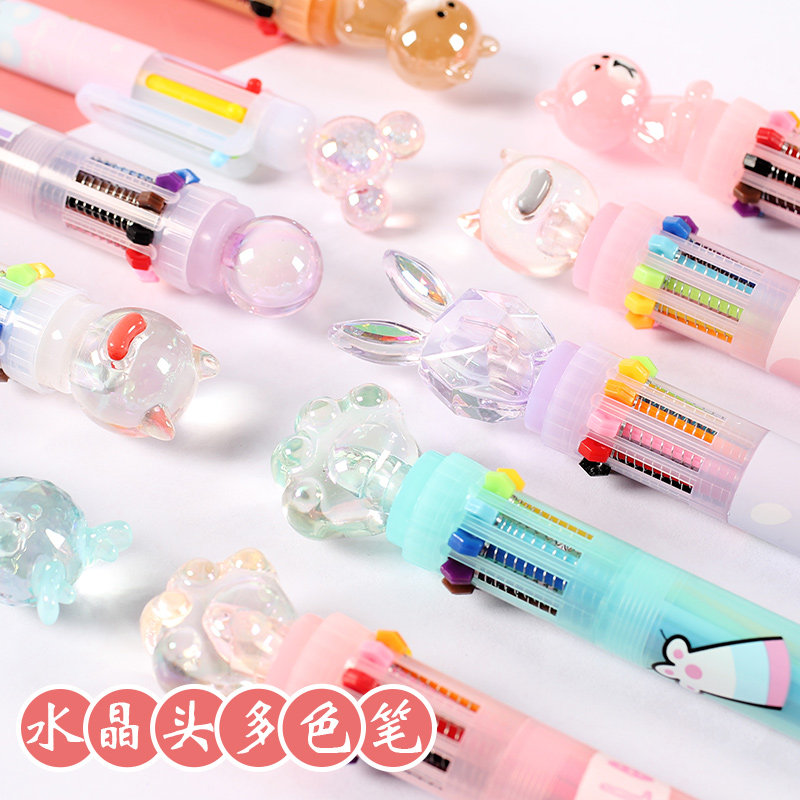Crystal head high face value net red Korean deco colored ballpoint pen Multi-color all-in-one cute creative pressing teenage girl versatile student with 10 color pen 12 color cute cute cute hand ledger graffiti pen