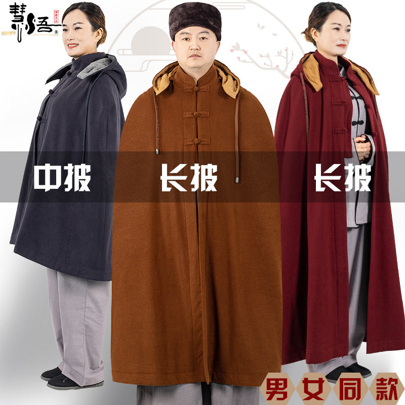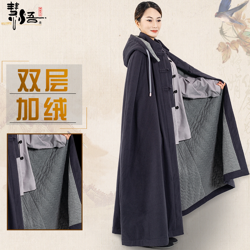 Hui Epiphany to sit in the cloister Women's Winter Warmth Plus Suede Thickening Zen Monk Costume for the Curse Anti-chilling Long version of the Han clothes Cape Man