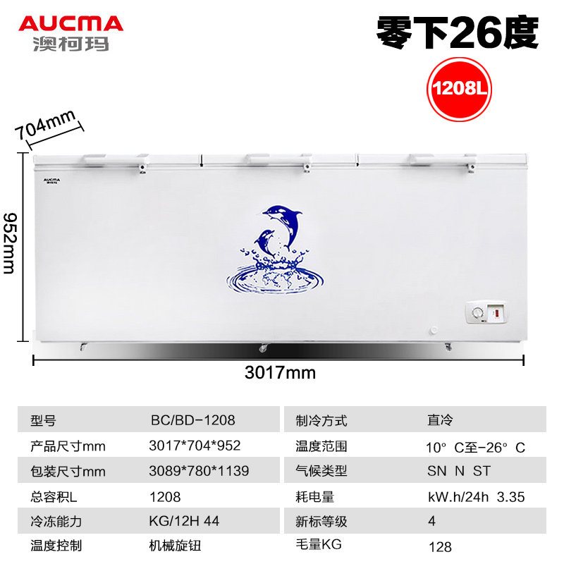 Aucma freezer commercial large-capacity refrigerated horizontal freezer freezer fresh-keeping dual-use refrigerator energy-saving single-temperature freezer