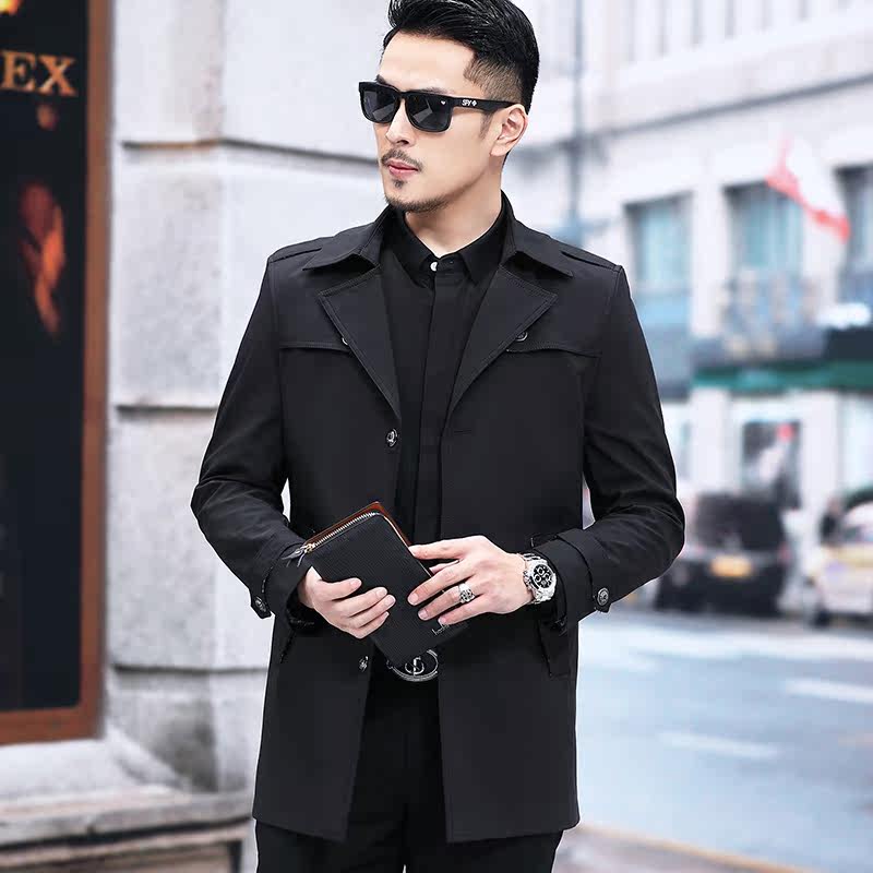 Medium-long version of the wind clothes men 2022 spring autumn season new turn-collar casual jacket Han version loose business thin clothes large clothes