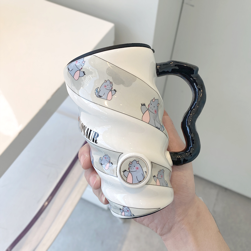 Large-capacity ceramic cup female cute high-value cup with lid mug creative personality trend water cup breakfast cup