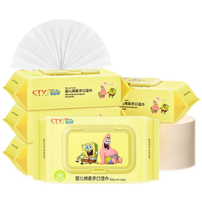 Sponge baby wet towels 80 slices wet paper towels newborn toddler hand mouth special portable large package 2021 new