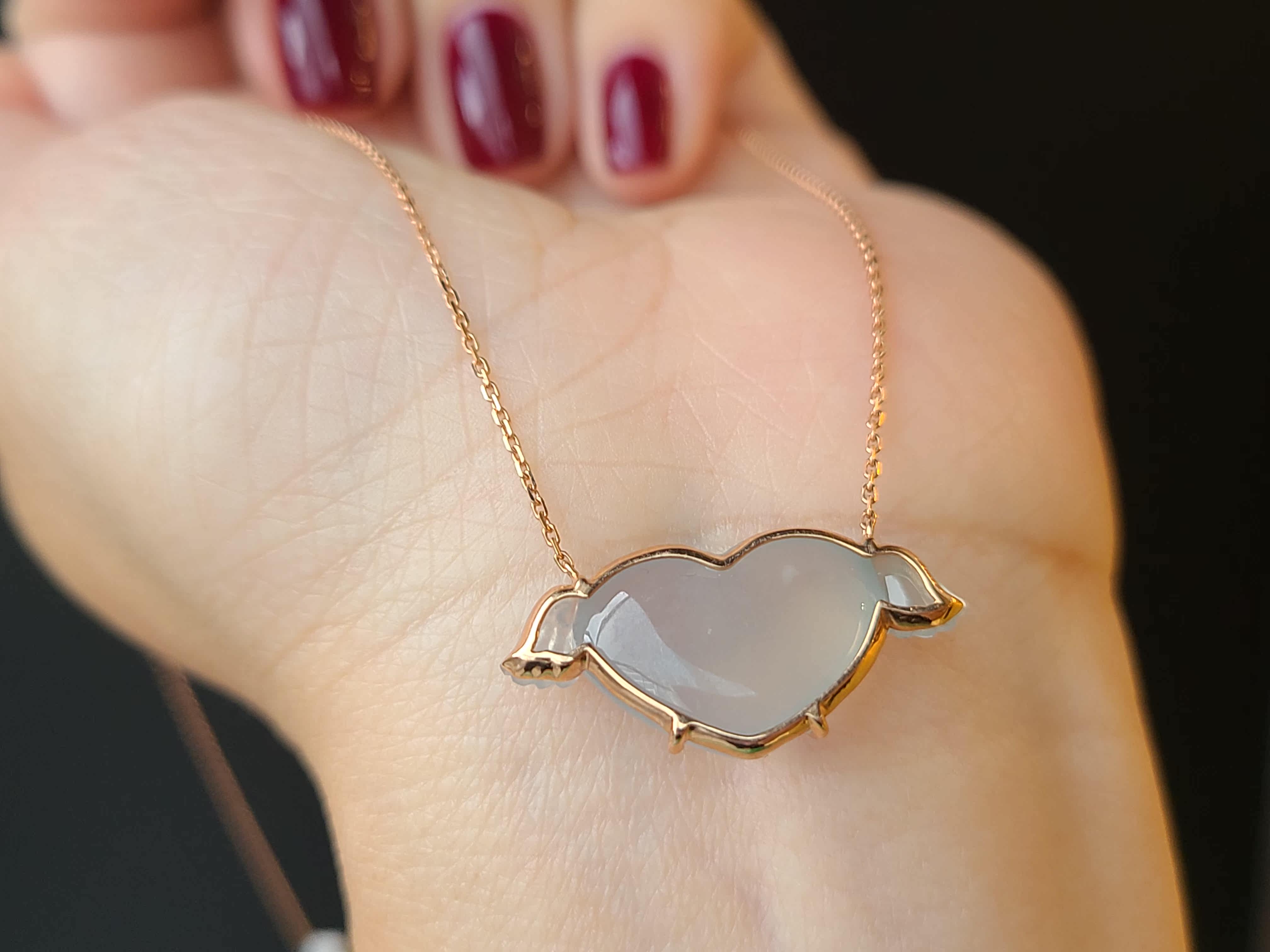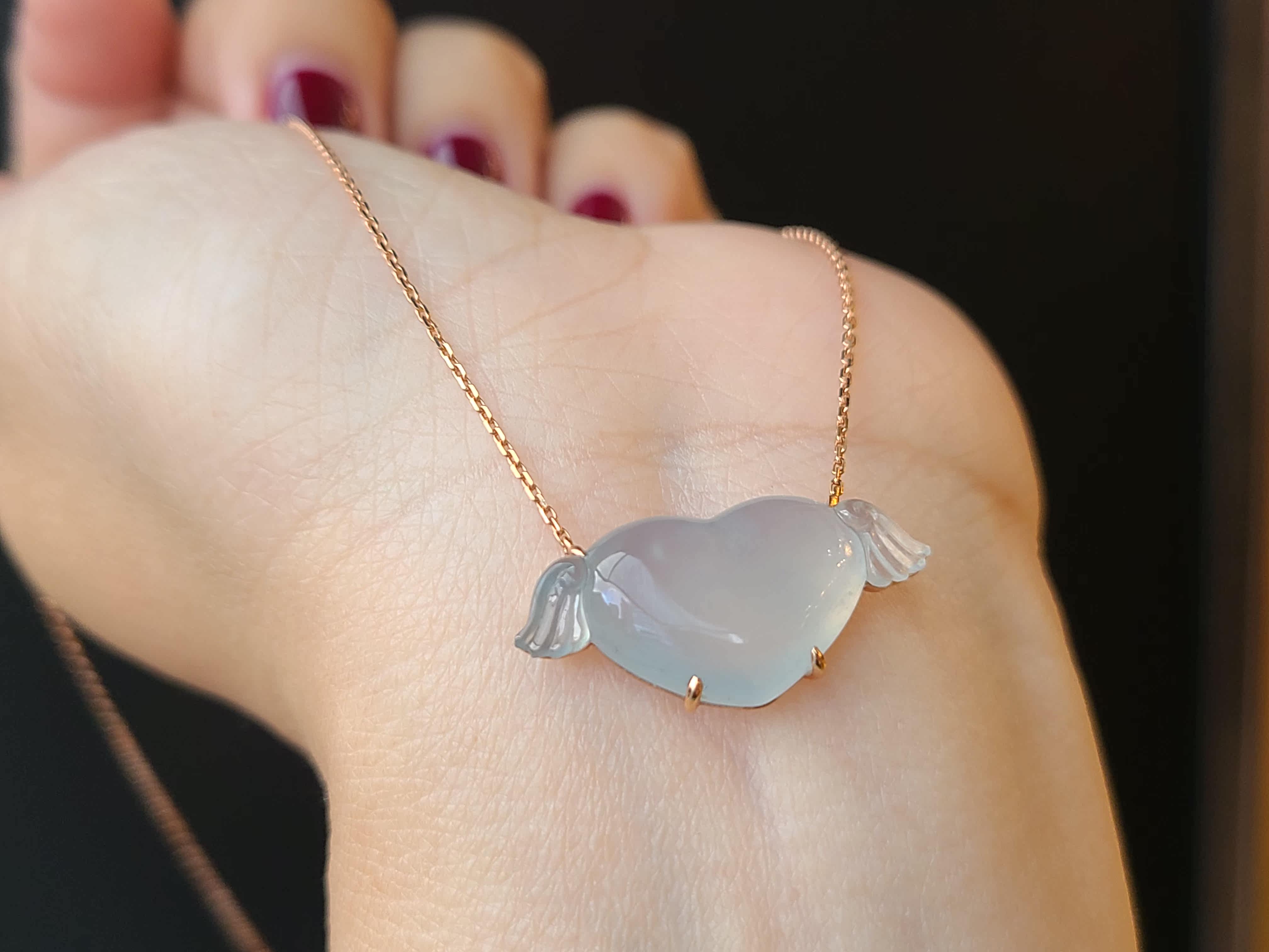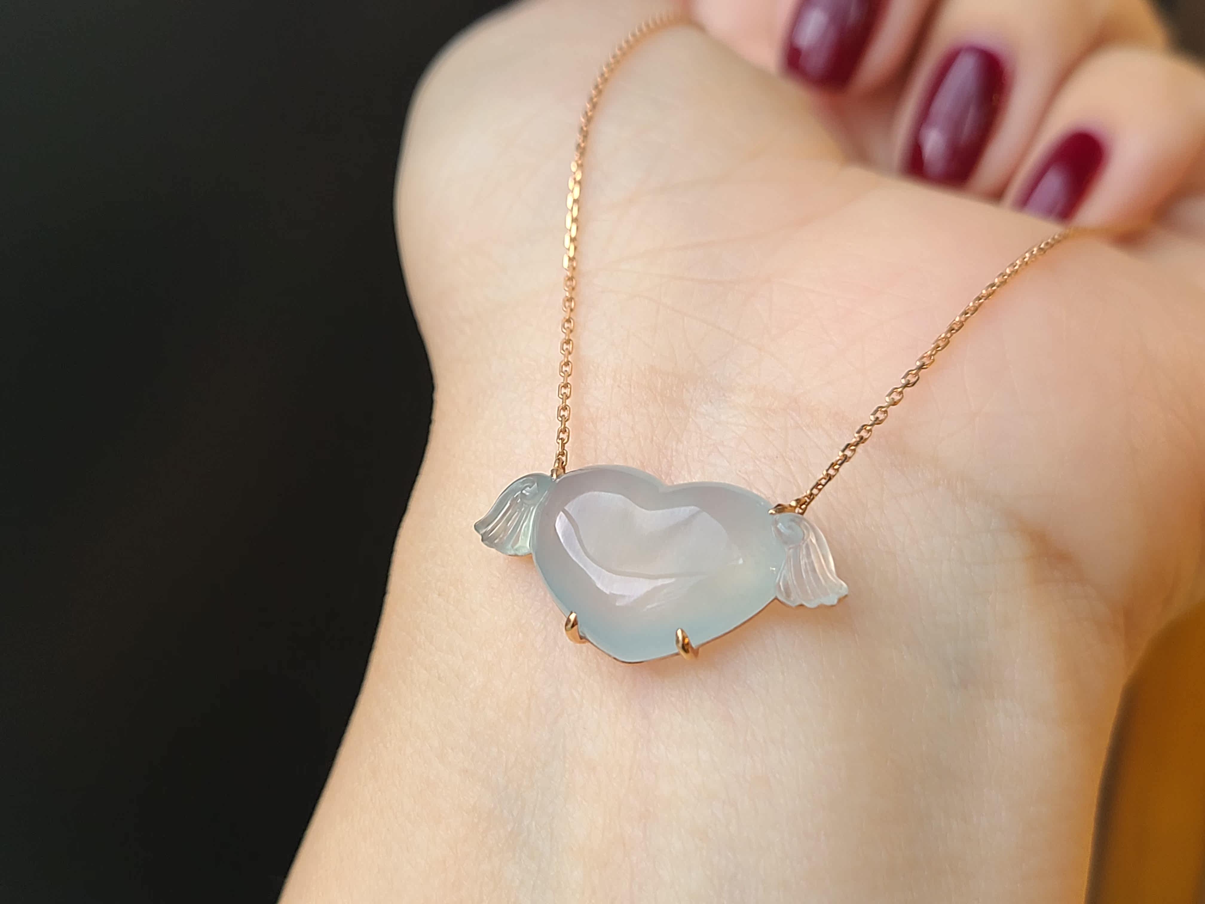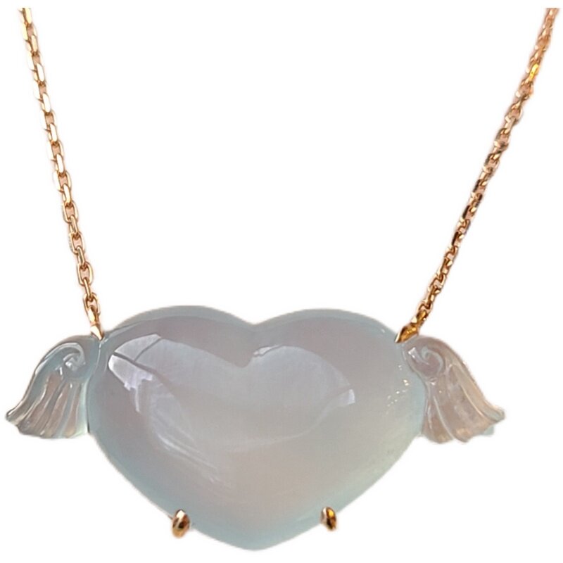 Myanmar natural jadeite A high ice blue bottom love lock chain necklace women's pendant pendant 18K gold real shot