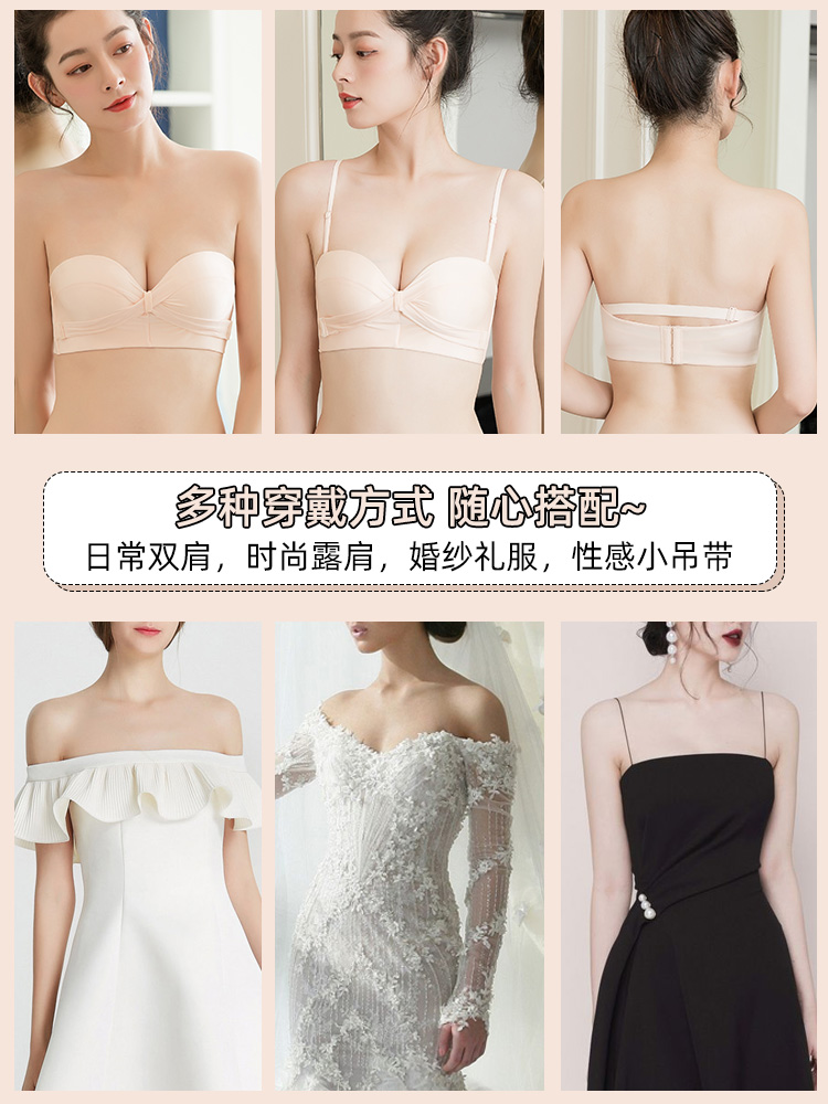 Shoulder strap underwear with female small breasts gathered for non-slip thin and invisible wedding gown special summer bra oblitera bra