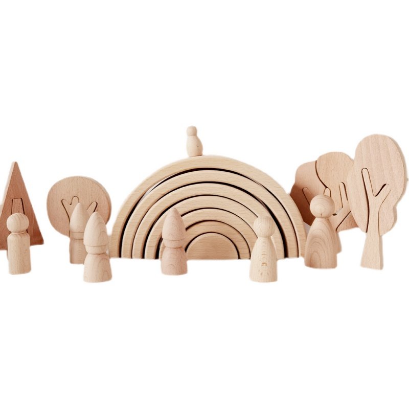 4 small trees 7 small fish and small fish 15 stacking Le Cabin 12 beech log log wooden wooden rainbow bridge 10 marine animals