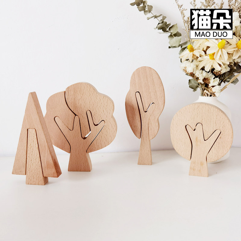 Cat Children early teach wooden blocks without paint toys to build 2 - 3 - 6 years old boy and girl Yi Yi Enlightenment baby
