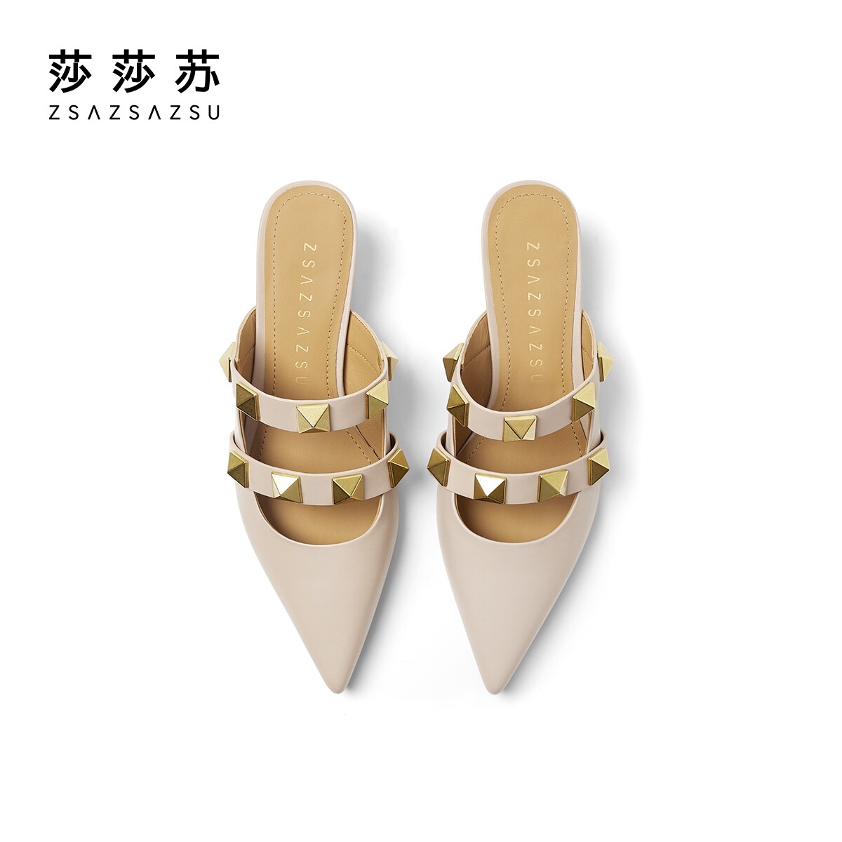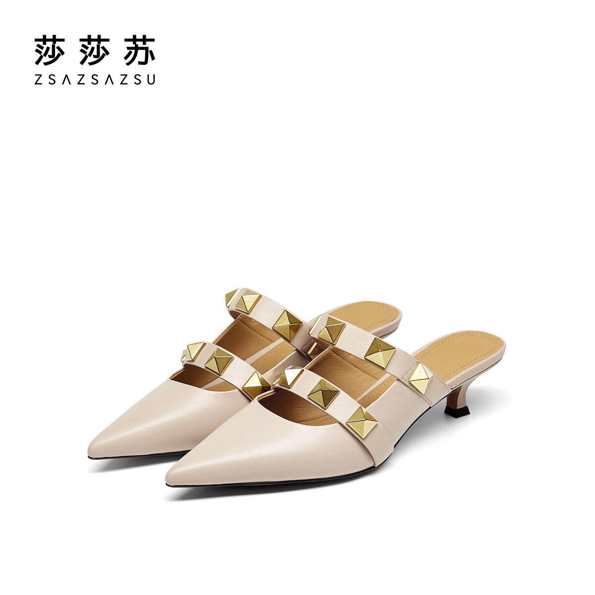 Sashasu Spring Summer's new fashion pointed fine heel Mueller drag woman with rivet Baotou half slippers