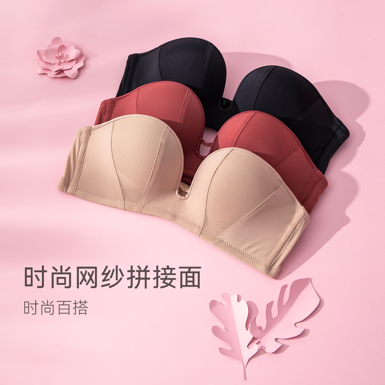 Lady Popo's back with anti-slip invisible shoulder strap bra tropes with small breasts and no steel ring gown lingerie lady