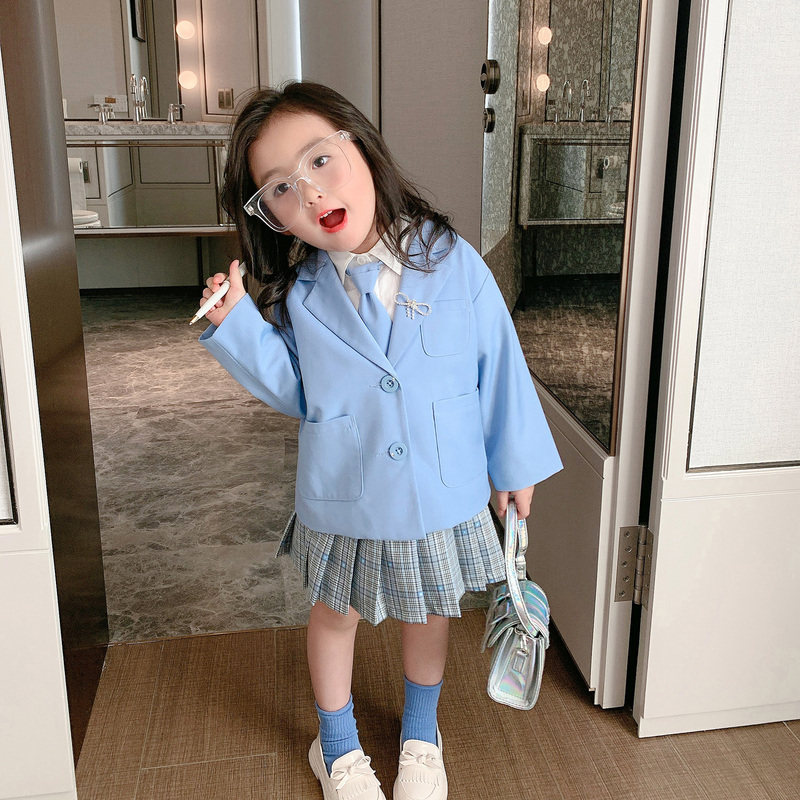Clean water Blue V neckline headcoat Stones Blue Vest Plexu skirt Stones Blue Temperament Suit Tie Milk White Bubble Sleeve T Shirt Cloud White Large Turnover Shirt Loving Blue Plaid Clear Water Blue V Collar Knit Cardiovert