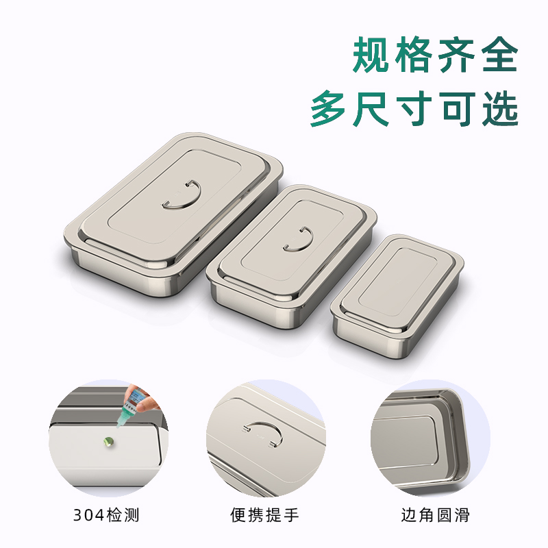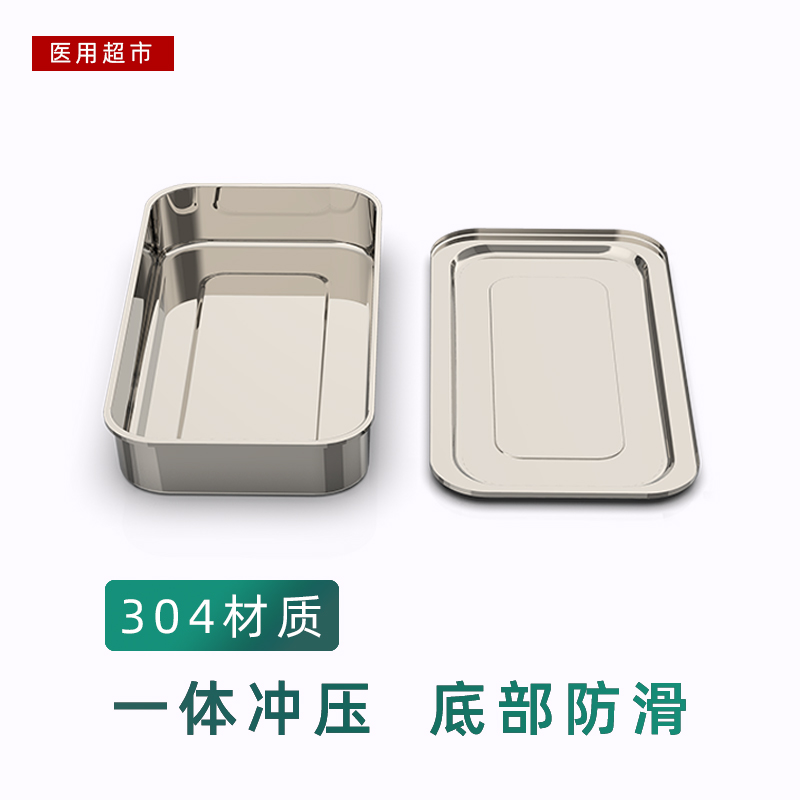 304 stainless steel disinfection box with cover square plate thickened stainless steel instrument plate high temperature disinfection utensils anti-iodine