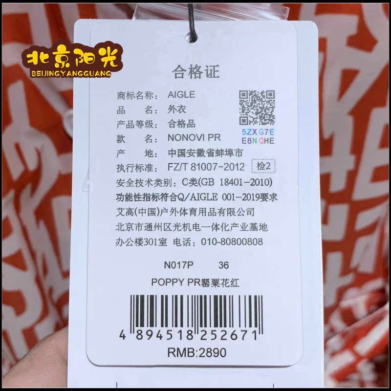 France AIGLE EGO counter 2021 Spring and summer NONOVI PR female double-row windshirt N017P