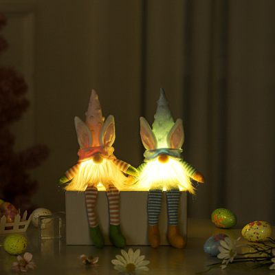 New European Easter Decoration Supplies with Lamp Hanging Legs Plush Faceless Doll Desktop Window Rabbit Lamp Ornament