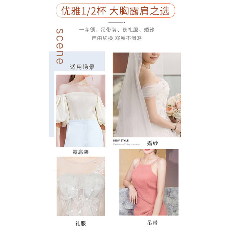 Ultra-thin strapless underwear, large breasts, small breasts, no trace, chest bandeau bra, non-slip chest stickers, summer for women's wedding dresses