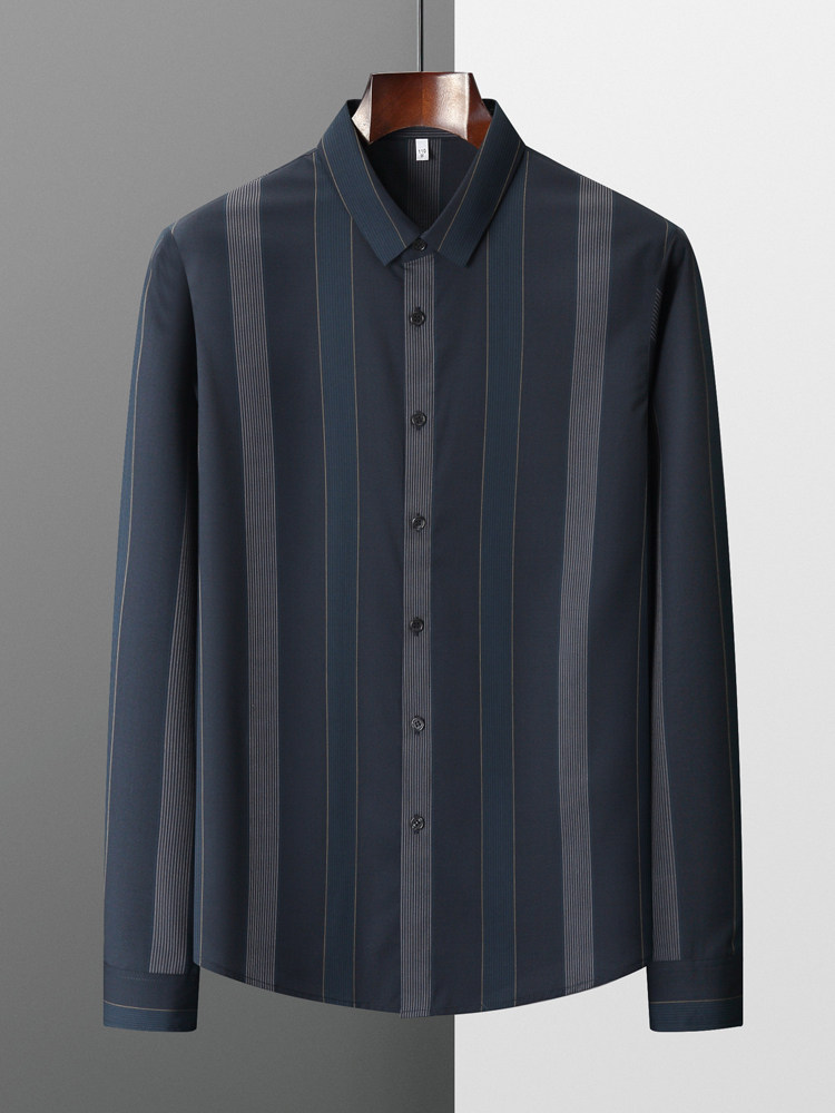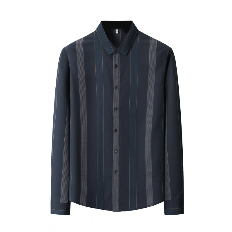 Handsome striped shirt Men's long-sleeved slim Korean version of the trend base top Autumn and winter business dress free ironing shirt