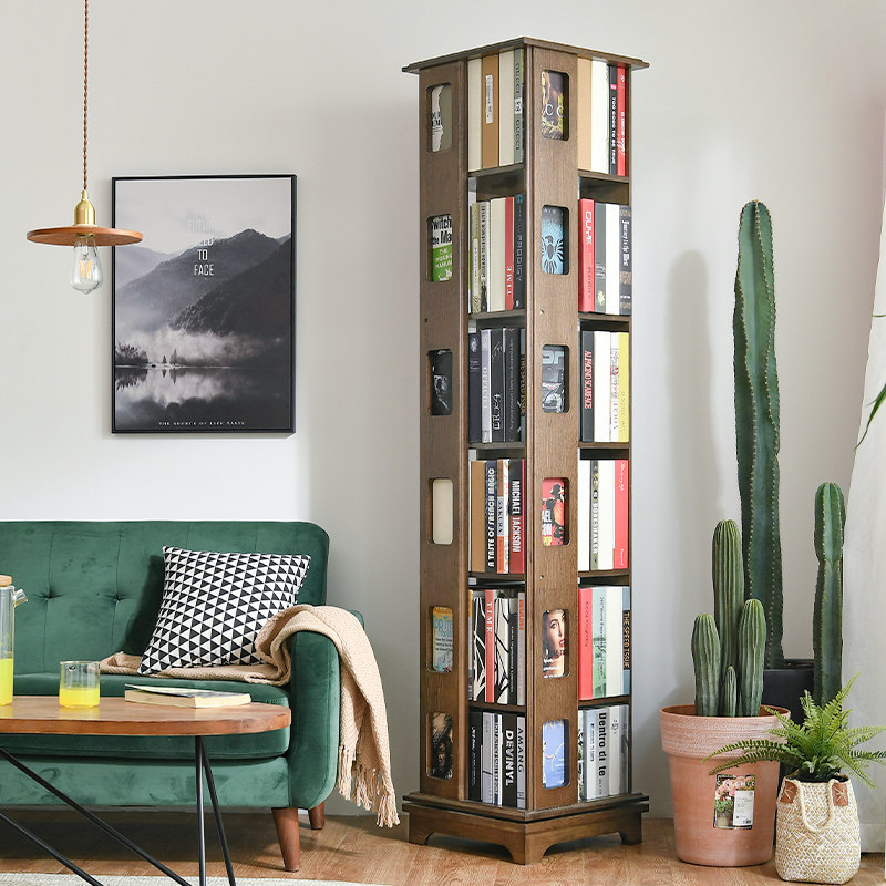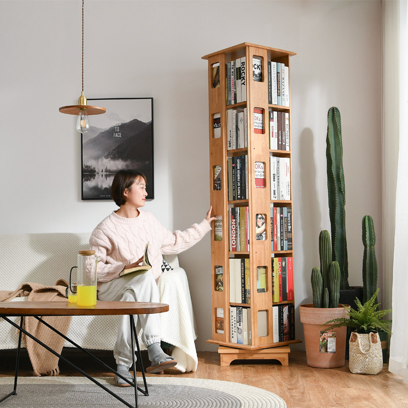 Solid wood rotating bookshelf 360 degree bookcase floor simple children's shelf student living room home creativity