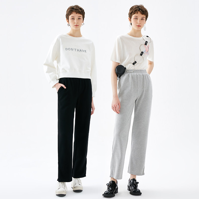 Jamor Autumn New Simple Light Gray High Waist Trousers Lax Little Little Little Leisure Trousers Waist
