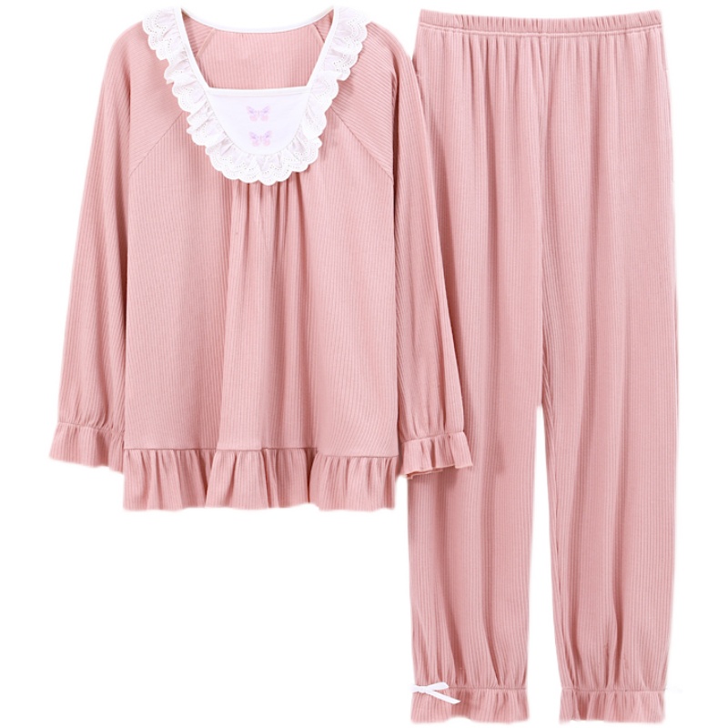 Cat person sleepwear women's spring autumn season pure cotton long sleeves 2022 new cute princess wind reduced age foreign pie suit autumn and winter