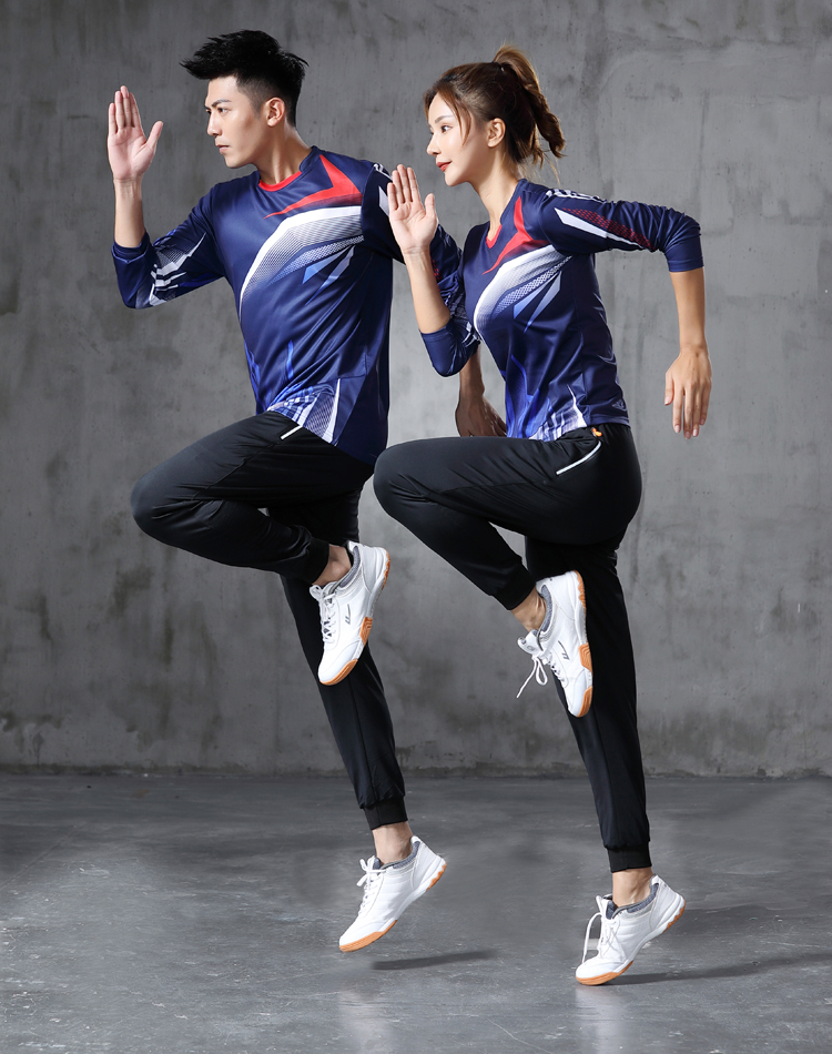 Long table tennis suit men's and women's badminton suit long-sleeved tug-of-war training suit sweater trousers group purchase printed LOGO - Taobao