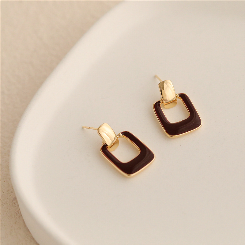 S925 silver needle drop glaze niche design earrings female temperament simple high-end earrings personality all-match earrings