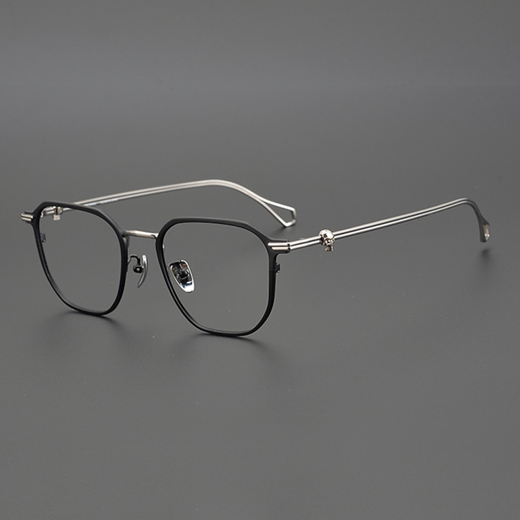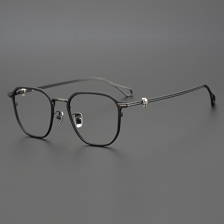 Original design Skull skull decoration ultra light pure titanium square Myopia Glasses Man with degree flat light glasses anti-blue light