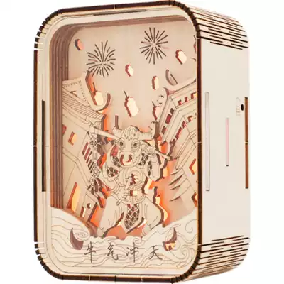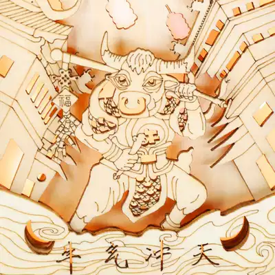 Suzhou Museum wooden night light ox year cow turn dry Kun bull turn Kun bull turn Qian Kun turn Qian Kun touch three-dimensional creative gift gift