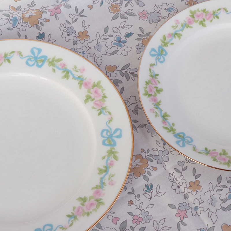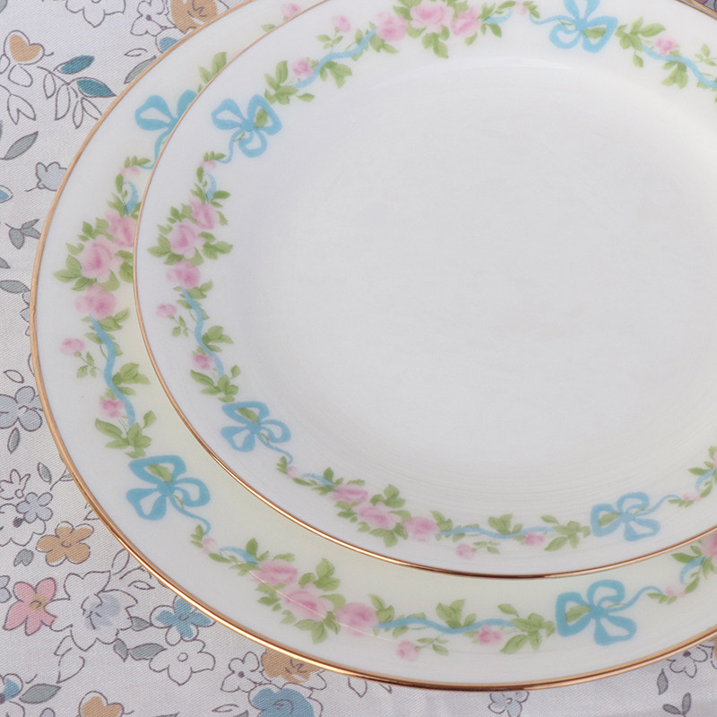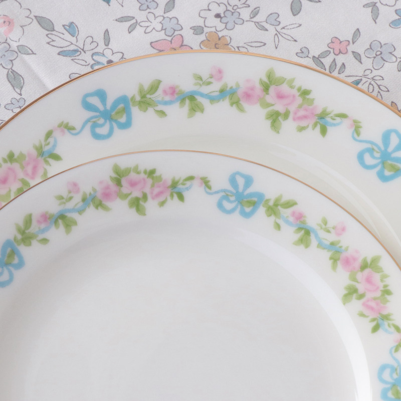 Small earth French style dinner plate cake pan vintage blue silk with butterfly knots Blossom Disc set of disc Ceramics