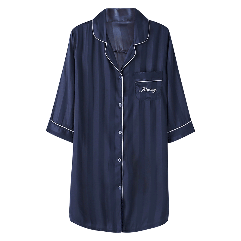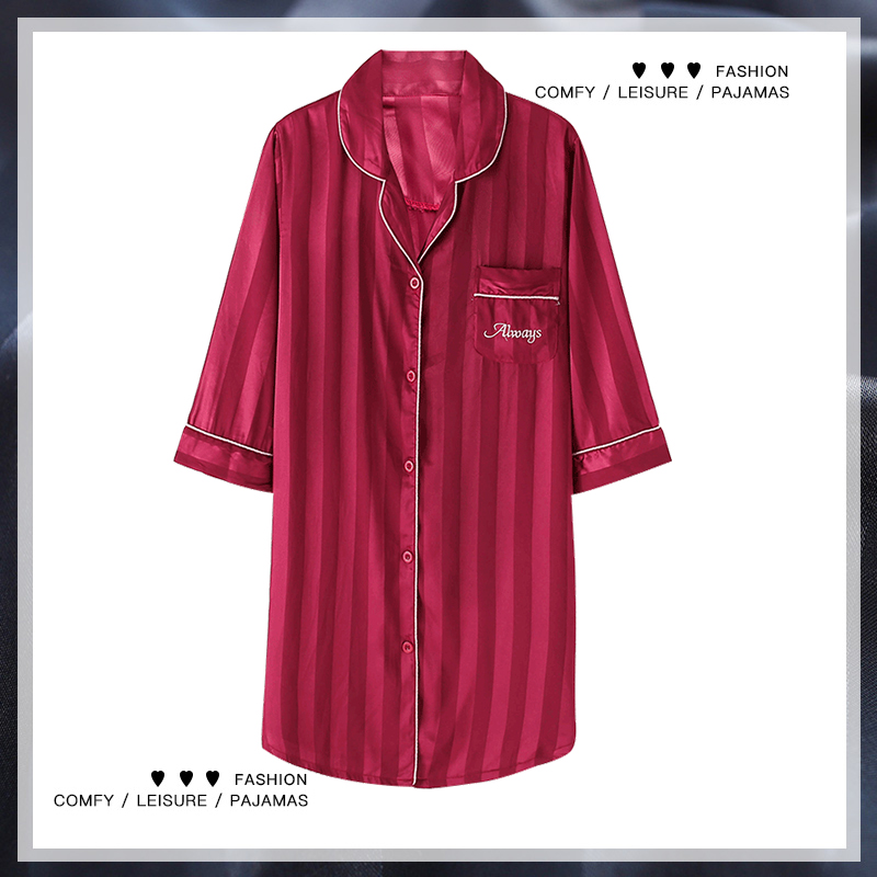 Ice Silk Sleeping Dress Woman Summer Sexy Slim Fit 70% Sleeve Summer Half Sleeve Emulation Silk Shirt Enlarge Yard Pyjamas Woman-Taobao