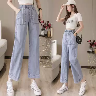 Jeans children's summer 2021 new fashion all-match trendy Korean version of loose casual high waist thin straight trousers