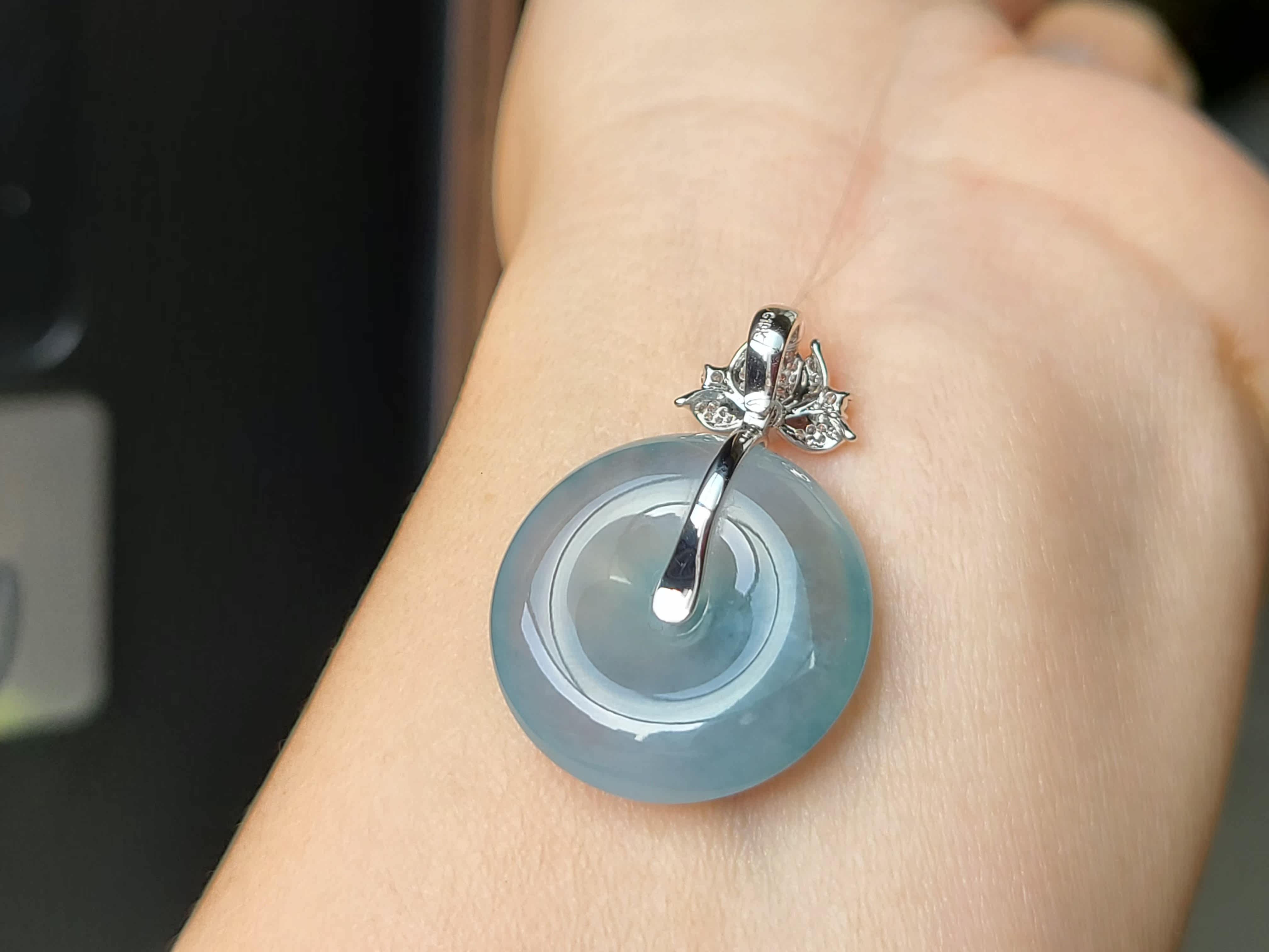 Myanmar Natural Jade A Goods High Ice Blue Float Flower Ping An Buckle Pendant Women's Button Pendant 18K Gold