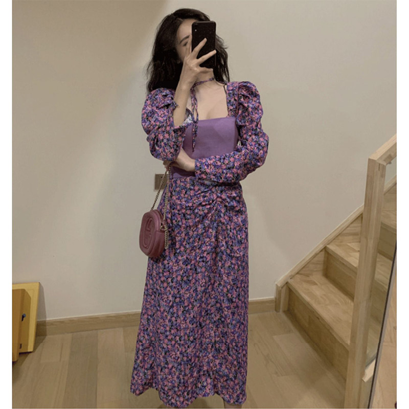 Autumn clothes 2021 The new female design is a little crowdsourced with small scents of small scents and a purple-style retro-style vinochio