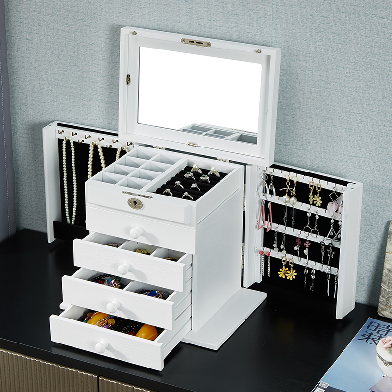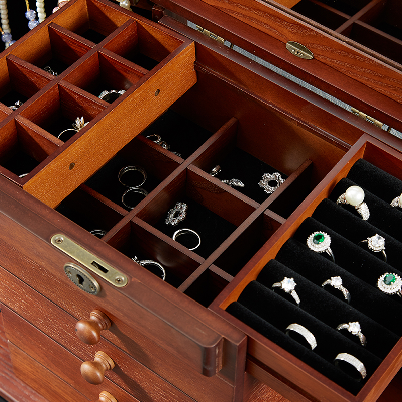 Wooden jewelry box with lock princess light luxury Chinese style female wedding bracelet earrings jewelry storage box gift