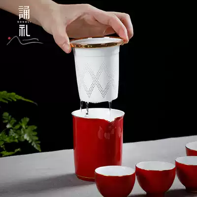 Recitation ceremony light luxury travel tea set set a pot of four cups with tea filter fast guest cup small set outdoor car kung fu tea