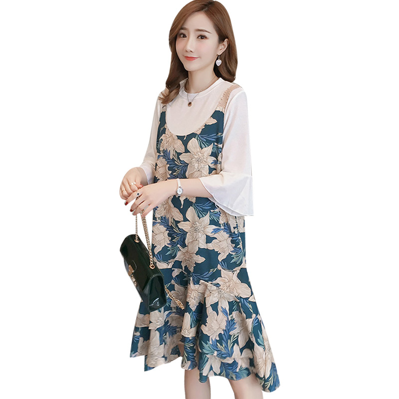 Pregnant woman Libra dress Summer thin net red suit Two sets of ice silk T-shirt Breastfeeding Skirt Loose Fashion Gestation-Taobao