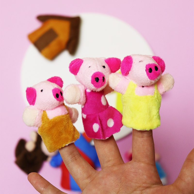 Three Little Pigs fairy tale kindergarten early education bilingual classic picture book hand puppet story nursery rhymes children's toys teaching aids set