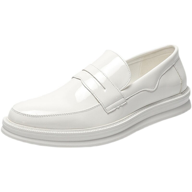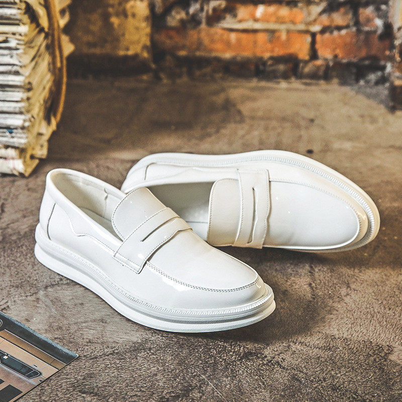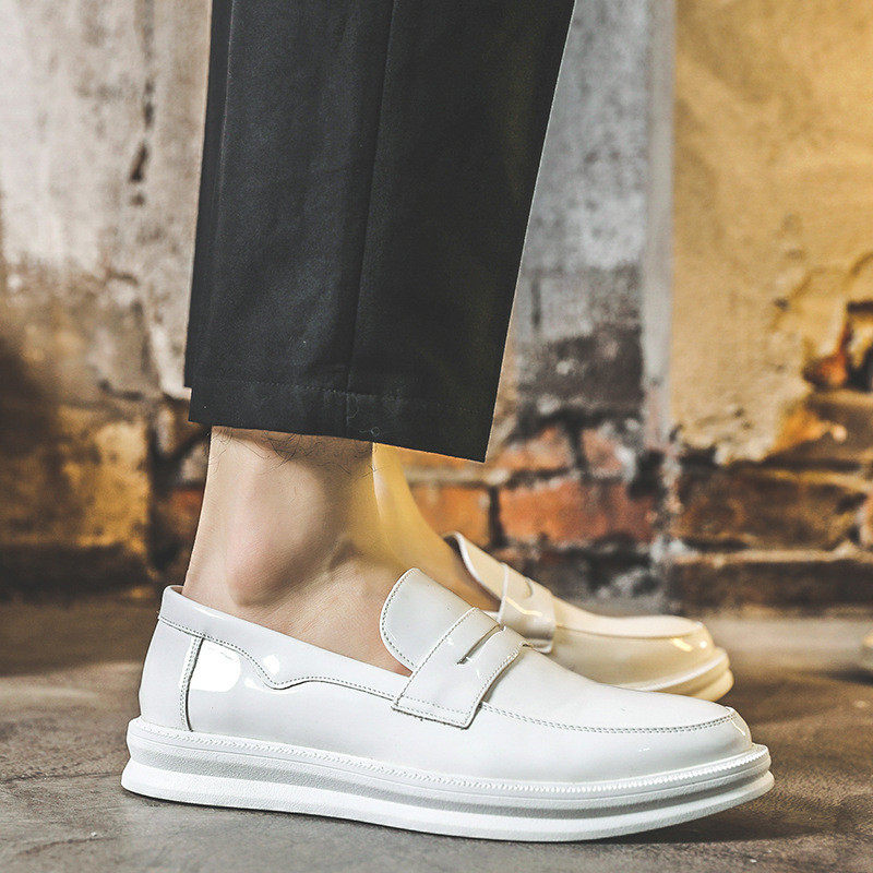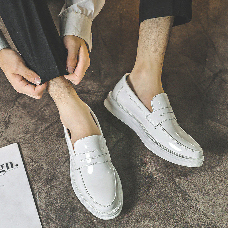Men's shoes summer breathable patent leather shiny white beanie shoes men's British all-match loafers lazy slip-on leather shoes