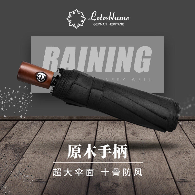 lotosblume automatic umbrella men's ten bone anti-storm plus reinforcement large folding sunny and rainy dual-use umbrella