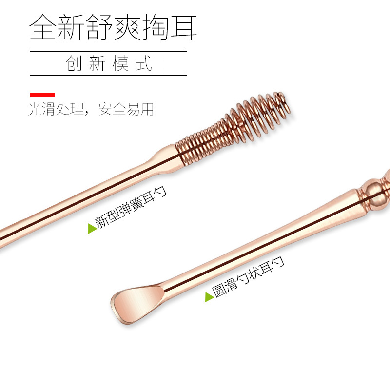Luminous holed out three sets with lamp ear spoons adult non-slip ear shit clips stainless steel tweezers double head spring ear dig spoons