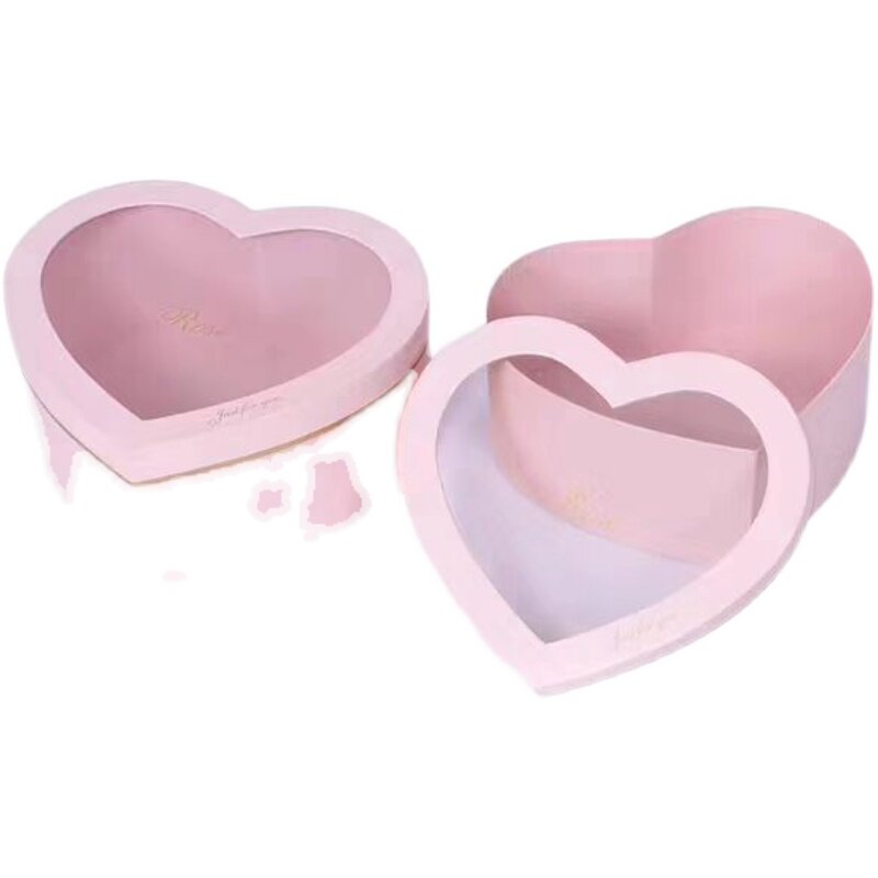 Crystal Heart-shaped Open Window Transparent Floral Packaging Box Fruit Flower Arrangement Rose Creative Gift Box Set Two Large Gift Boxes