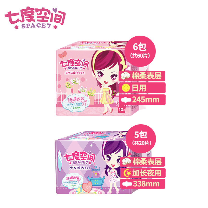 Seven-degree space sanitary cotton adolescent ultra-thin pure cotton Daily Night with aunt Towel Wholesale Whole Box Mix