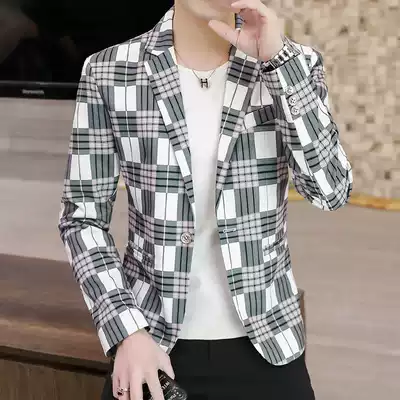 2021 spring new men's suit coat Korean slim handsome plaid single West casual small suit men's coat