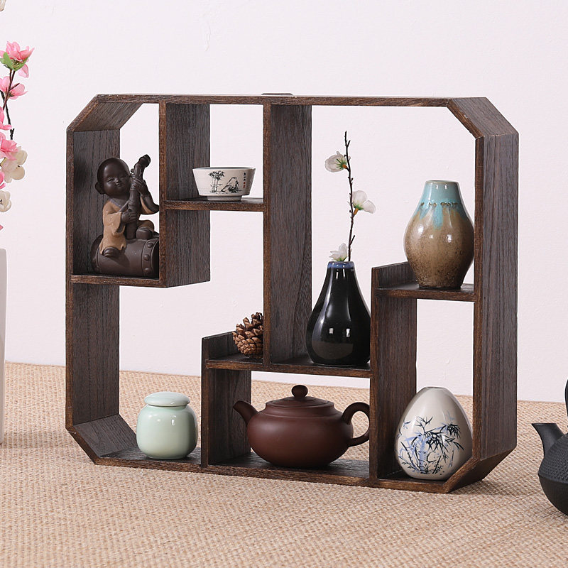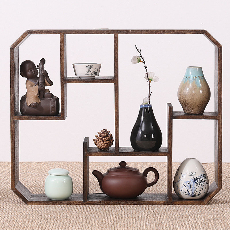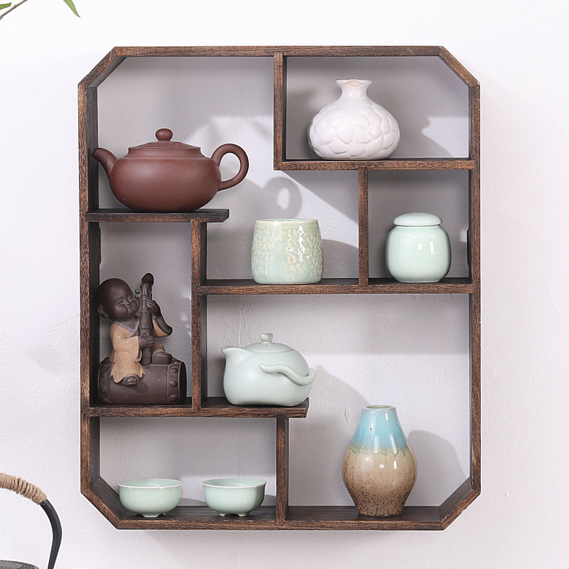 Solid Wood Bou Shelf Shelve Shelve Wall Cup Teapot teapot Teapot Containing Shelf Multi-Treasure Cabinet Chinese Display Rack Pendulum lattice shelf