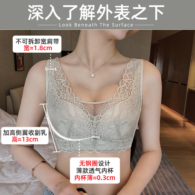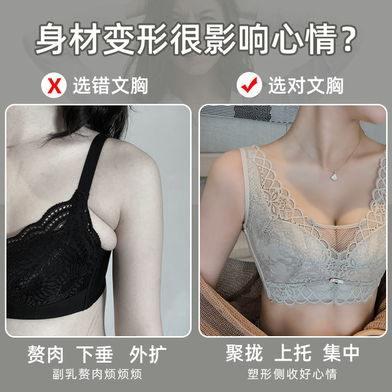 Hui Yan retracts the breast underwear women's thin big breast small shrink chest adjustment type bra large size no underwire beauty back bra