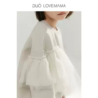 Ruishi children's clothing dreamy sweet cool hypotenuse stitching irregular mesh loose round neck pullover children's sweater female spring and autumn