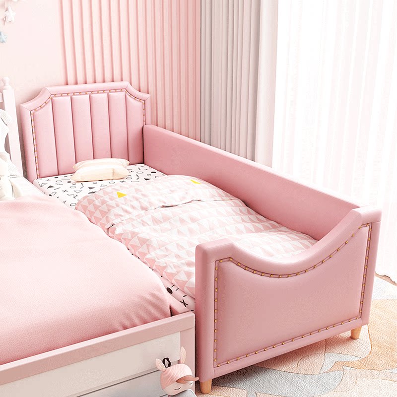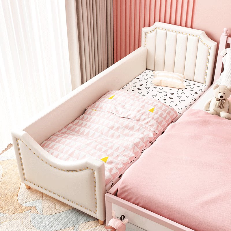 Light luxury children's stitching bed with guardrail girl princess bed widening bed stitching bed side bed with storage cot
