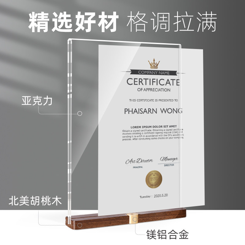 A4 crystal glass photo frame set-up honorary certificate frame test grade closing certificate creative Commendation Award printing power of attorney training certificate collection