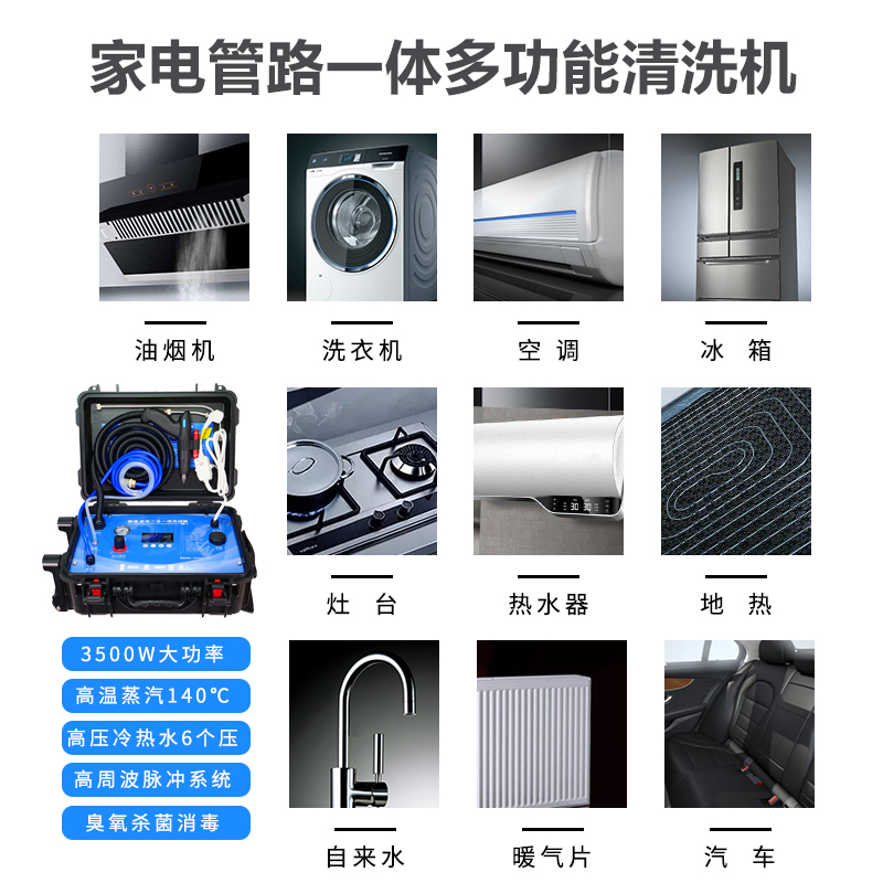 Home appliance water pipe floor heating cleaning machine pulse steam ozone integrated range hood high-power cleaning equipment