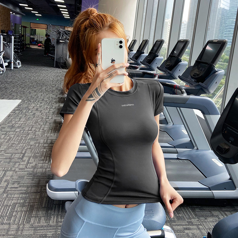 Sexy tight sports T-shirt women's elastic quick-drying breathable fitness short-sleeved fashion alphabet slim yoga clothes top