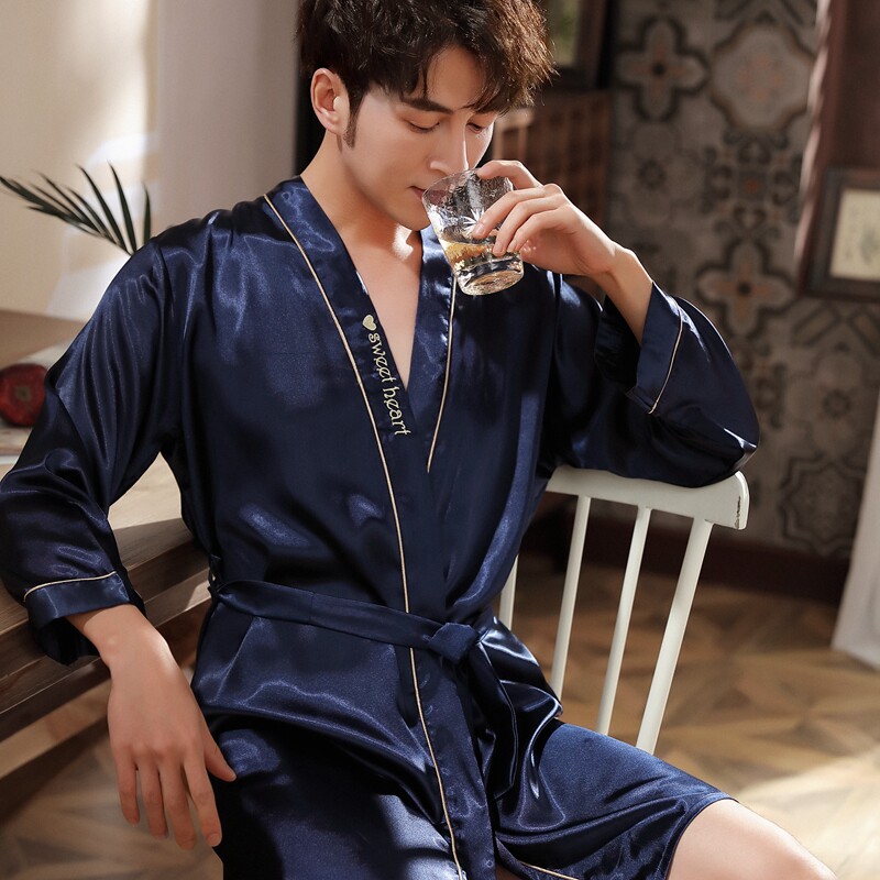 Men's pyjamas sleeping robes men's spring and autumn, ice silk thin and silk long sleeves Summer bathrobes suit casual new
