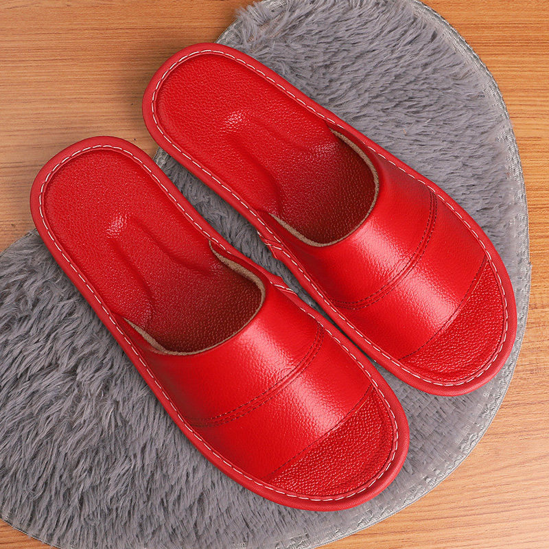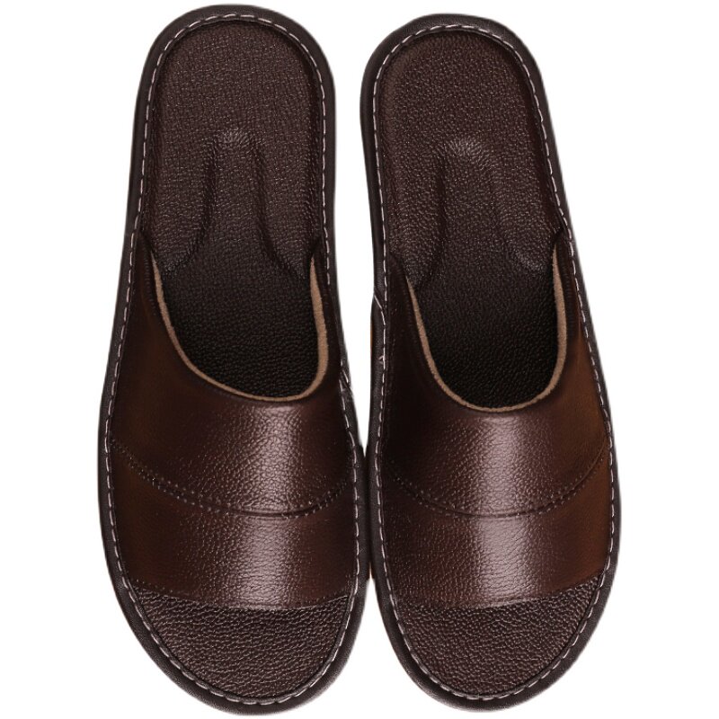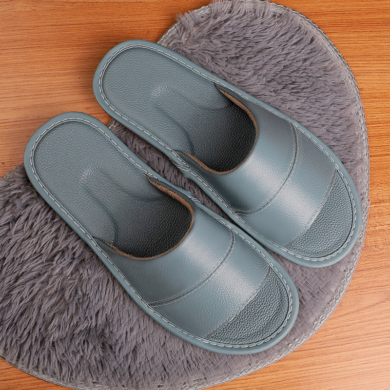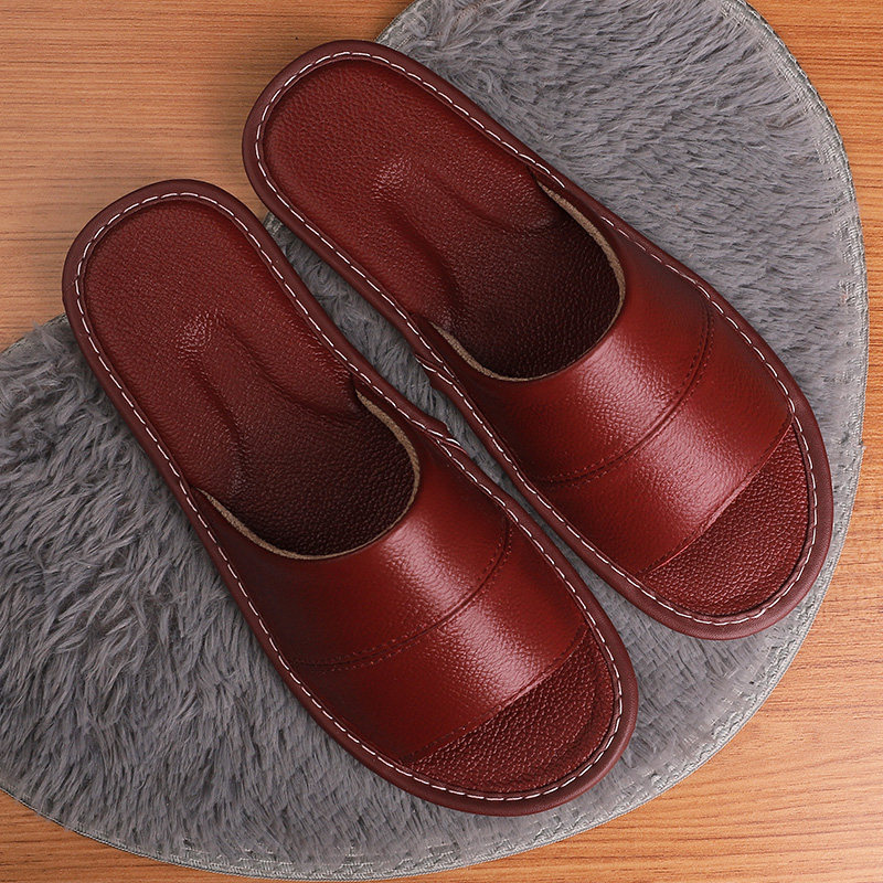 Genuine Leather Home Slippers Women Summer Home Indoor Non-slip Bull Leather Sandals Sandals Shoes Not Feet Smelly soft-bottom Home Men's bedroom