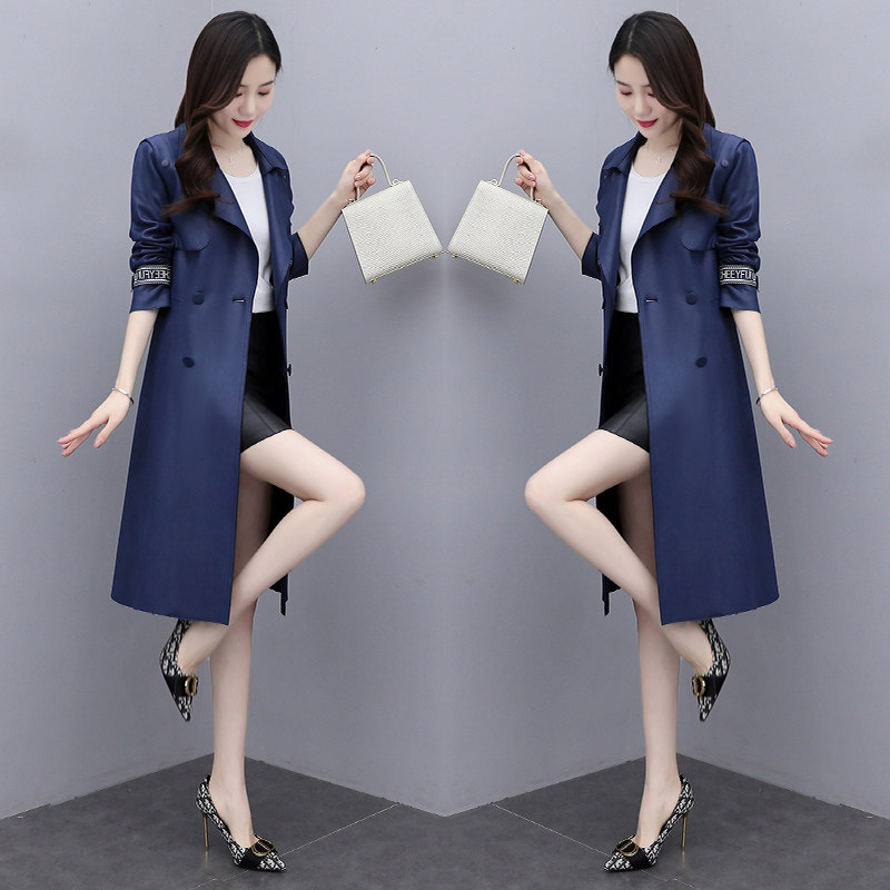High-end atmospheric windbreaker high-end 2022 early autumn new women's body tie fashionable medium-length thin coat